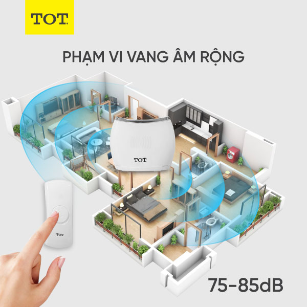 Thiết kế của loa chuông TOT tối ưu hóa khả năng truyền âm. Trong không gian gia đình, âm thanh từ 75-85dB có thể len lỏi qua các tầng và phòng khác nhau, giúp bạn không bỏ lỡ bất kỳ vị khách nào dù đang ở phòng bếp, phòng ngủ hay sân thượng.