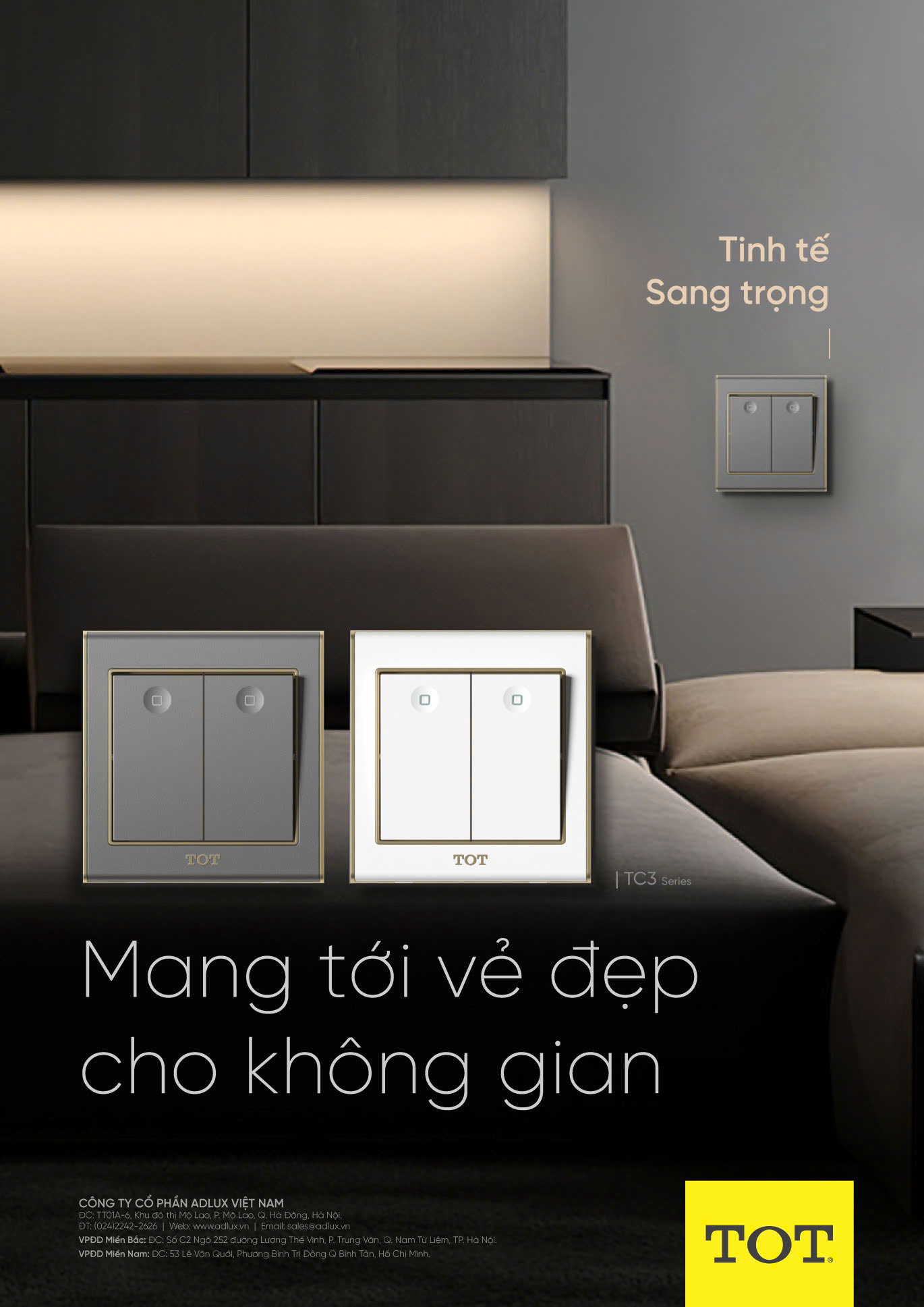 Là đơn vị phát triển thương hiệu TOT, Adlux Việt Nam luôn cam kết về nguồn gốc xuất xứ và chính sách bảo hành dài hạn cho mọi dòng công tắc ổ cắm. Khách hàng khi lựa chọn Series TC3 sẽ nhận được sự hỗ trợ kỹ thuật tận tình và dịch vụ hậu mãi chuyên nghiệp.